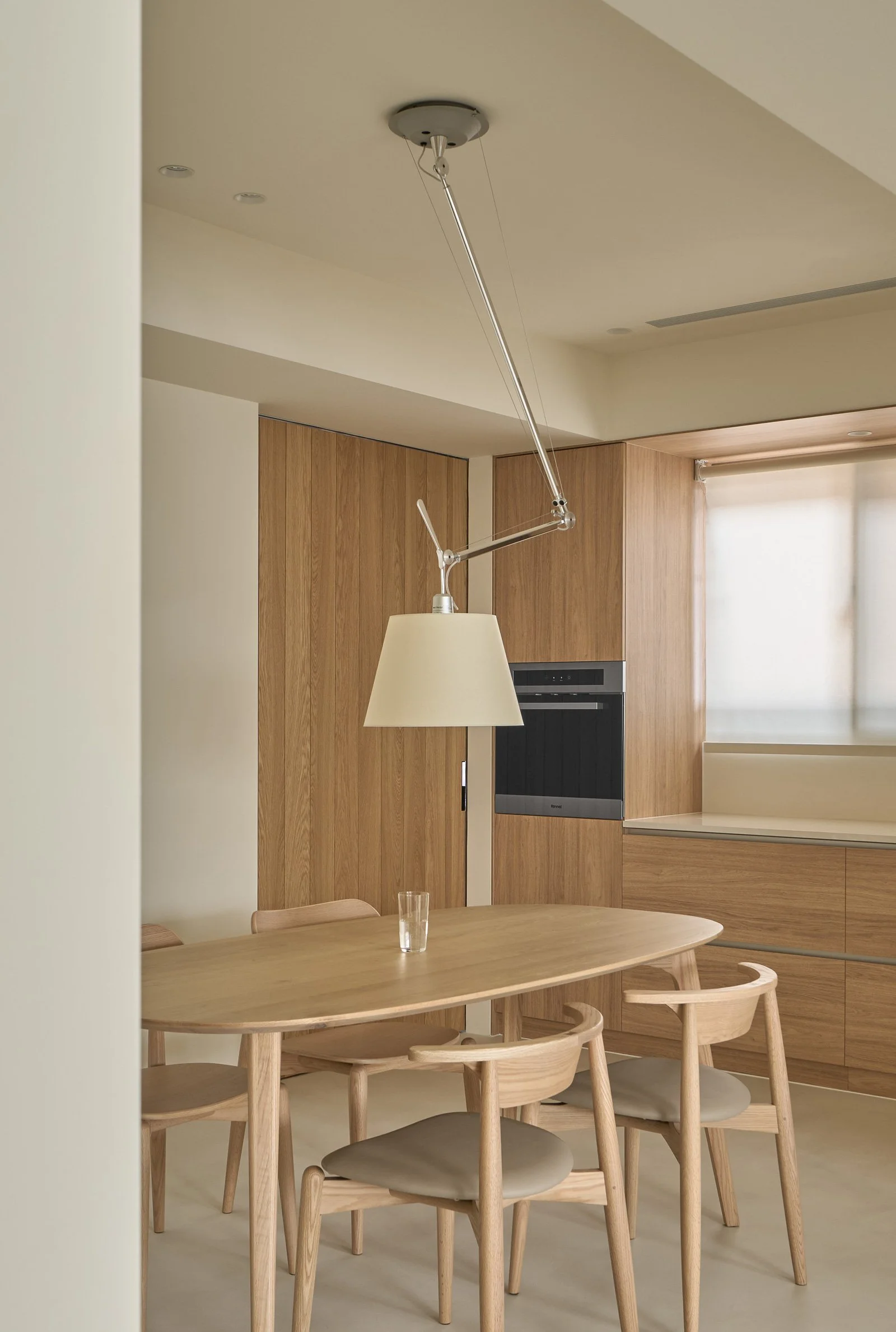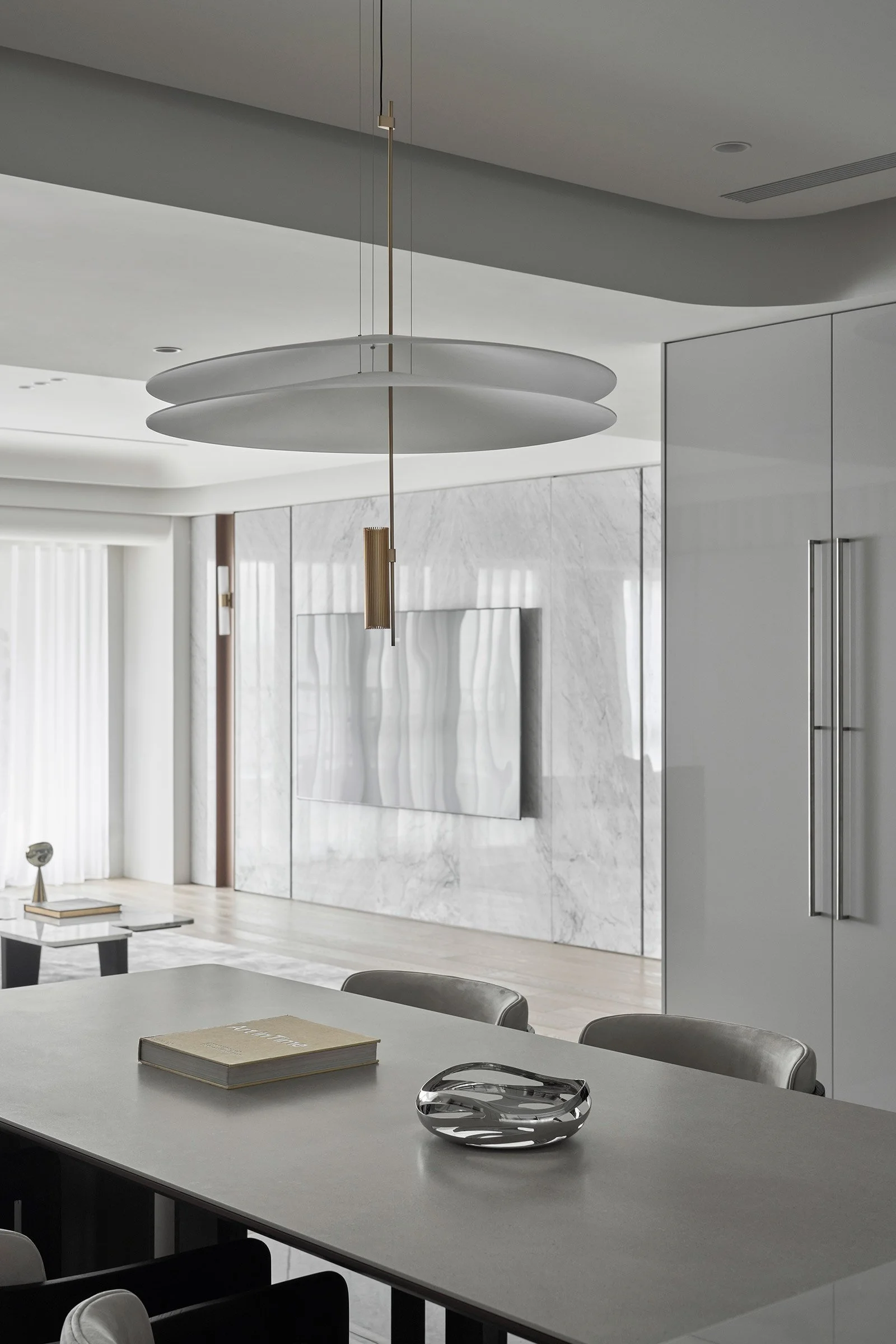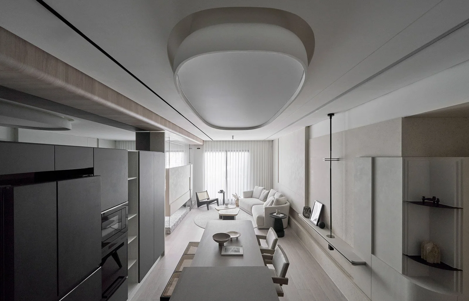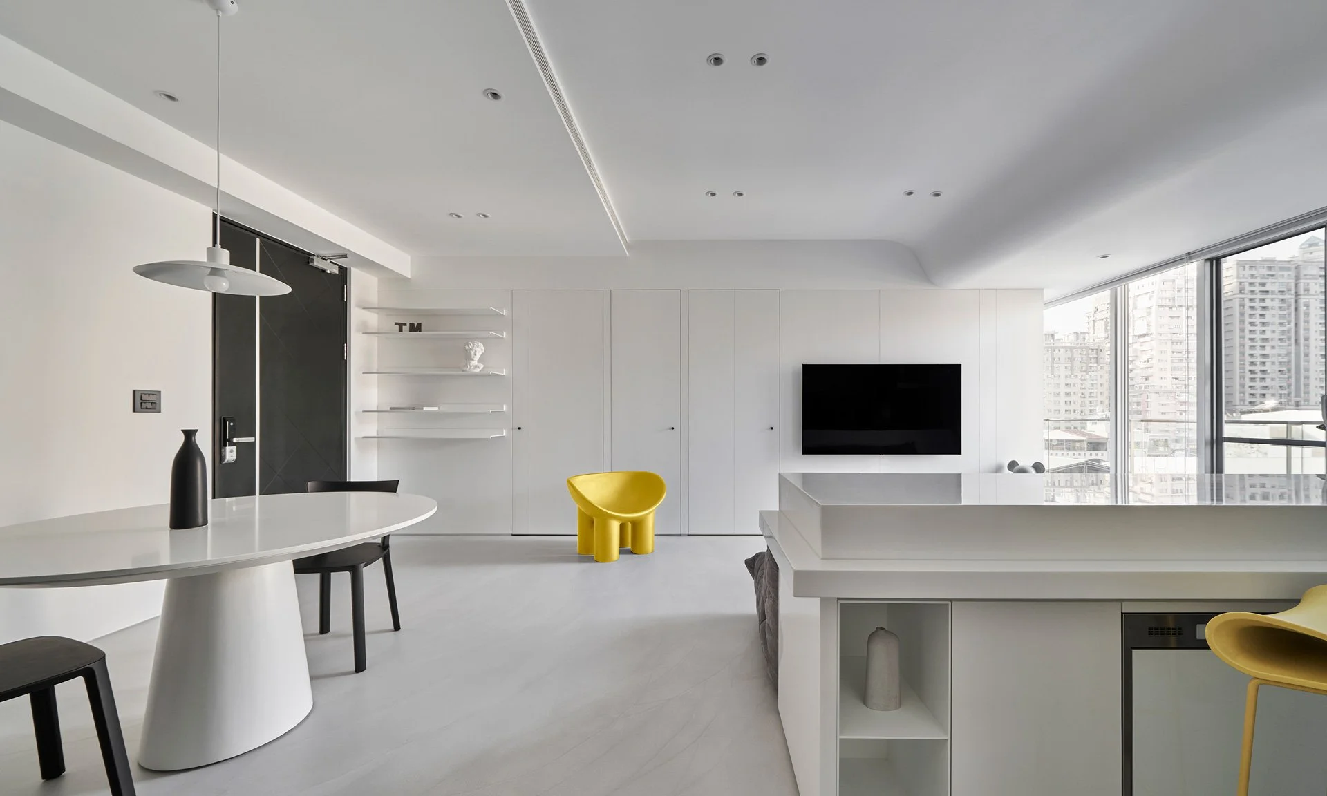 他精準地解構空間,每一次構圖皆沿著軸線展開,進行切割、對位與重組。在營造氛圍、進行感性敘事的同時,他亦追求清晰秩序的可視性。牆面間的對稱、轉角的對齊、深度與前後景的配置,皆化為空間語法的可讀線索。