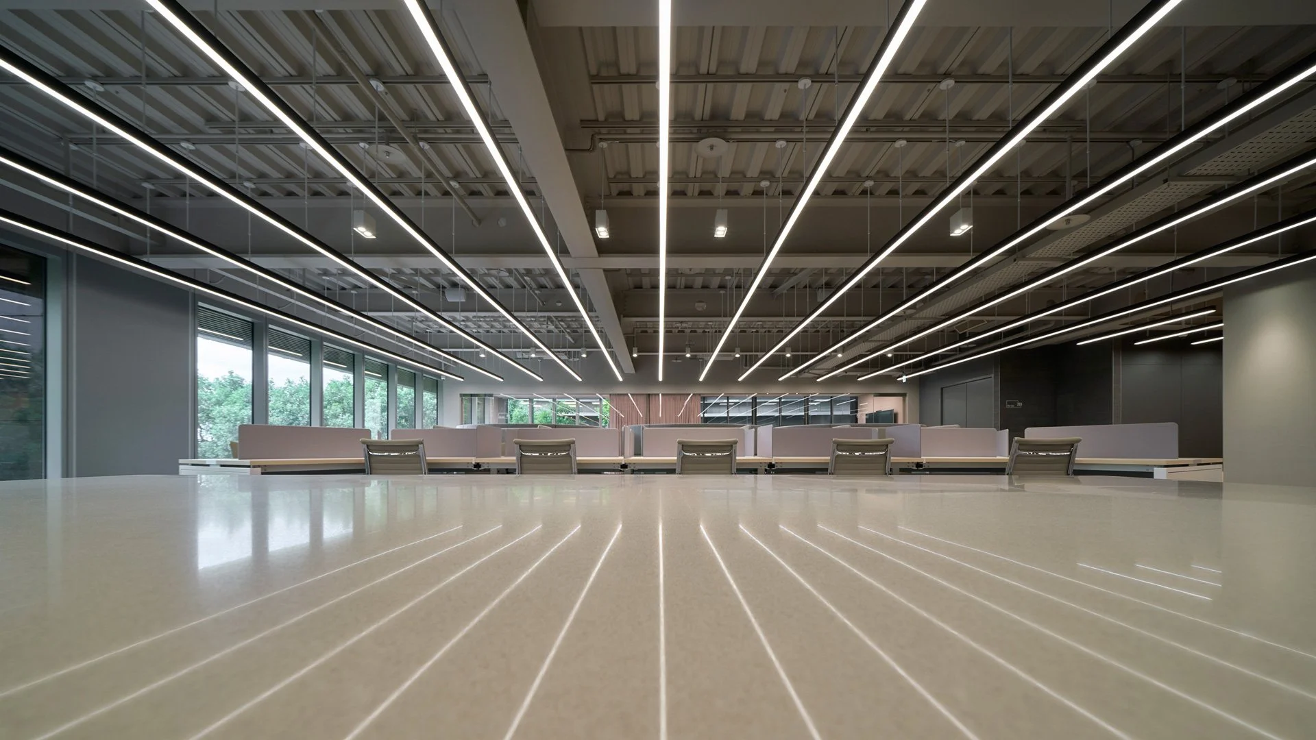 By reducing space to its essential forms, he finds rhythm in repetition and structure in simplicity.