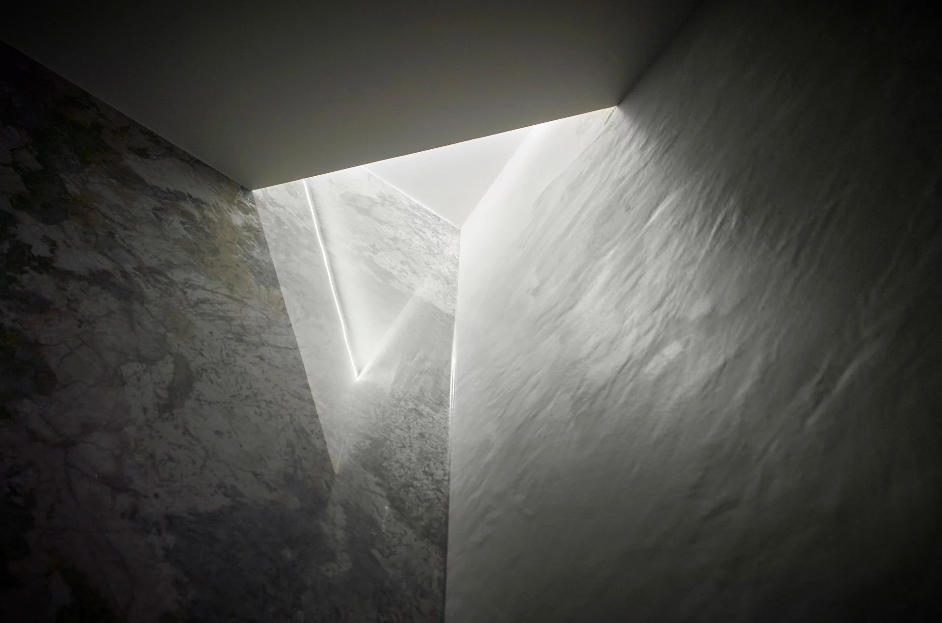 He reveals how space holds together, not only through light but also through the underlying grammar of geometry and form. Each composition unfolds along an axis and is constructed with precision.