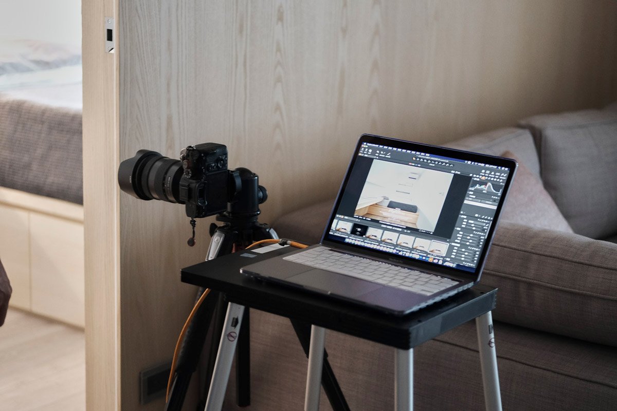 現在大部分空間攝影師都會加入連線拍攝,但我們在當代應該算滿早就有運用這個輔助方式。最初會有這樣的想法,是因為我以前廣告公司時期就接觸商業攝影,這一類的拍攝基本上都會用連線的方式,讓客戶就算在不同地方,也能透過軟體(Capture one )同步觀看,立即確認需調整的東西。