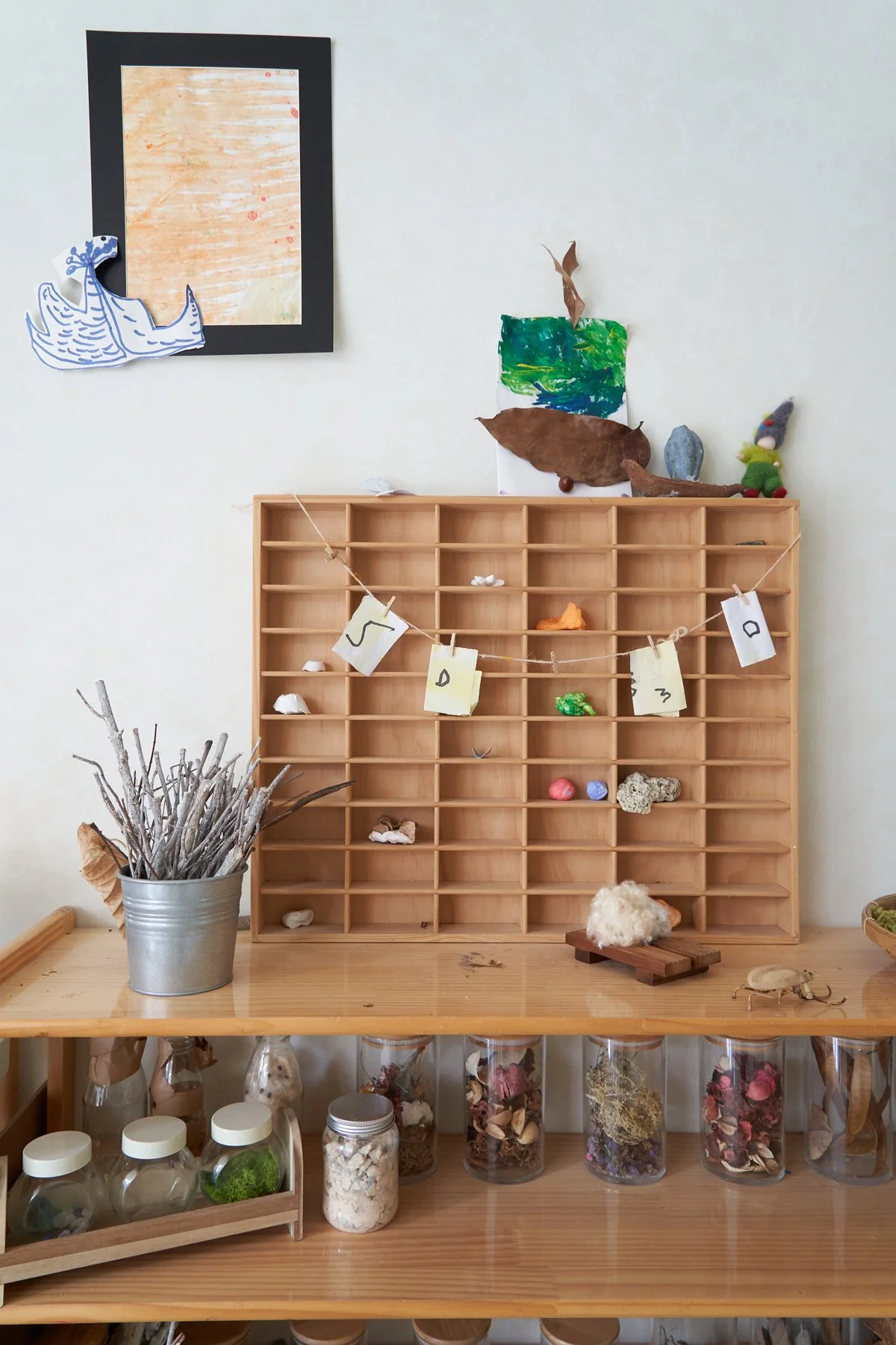 其實一開始的教室是跟孩子一起建構起來的,包括他們希望陶土區、音樂區、積木區等等設置在哪,都是經過跟他們共同討論而出的結果。可以說這個環境,一直處在一個變動跟未完成的有趣狀態