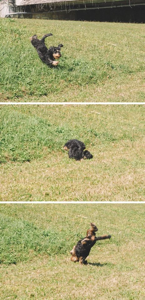 整個過程最困難的一件事,其實是讓曾是流浪狗的哈蘇信任我們,並建立起跟徠卡的相處模式。一來哈蘇正值邁入青春期,體力特別好,就會時常想挑戰徠卡的地位:比如搶她的東西吃,跑步的時候故意去撞她等等。我們花了很長一段時間,才獲取哈蘇的信任感,也導正他的觀念,讓他知道我們是一個家,徠卡是姊姊,兩條狗的食物都是各自一份,出去散步亦會是一起出去。