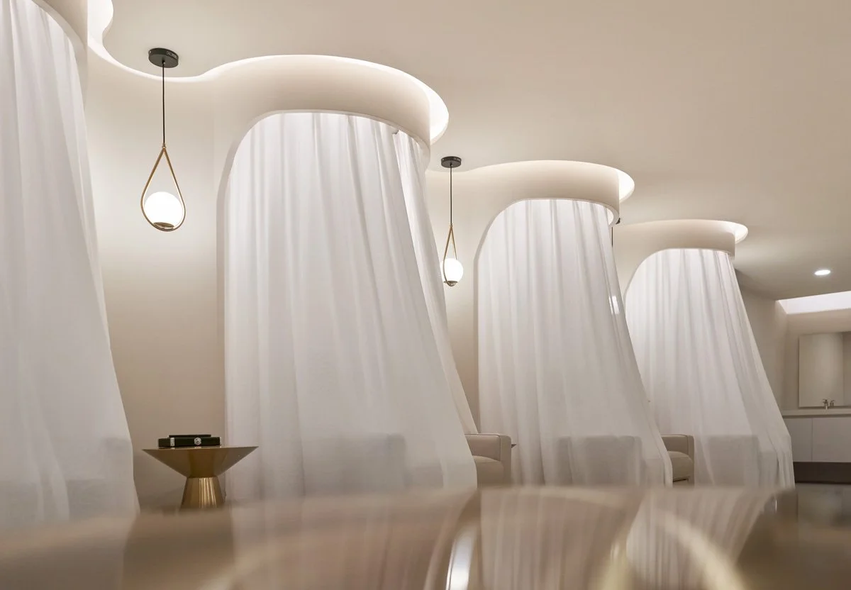 即使不是完全獨立的房間,診所也會提供一些隱私保護措施,例如紗簾或弧形座位的安排,讓人感到有一定的安全感和獨立性。這種設計讓顧客可以與醫生或前台諮詢人員,更加自在地溝通討論自己的需求與適合的療程。確定項目之後,再被引導至專門執行的空間。