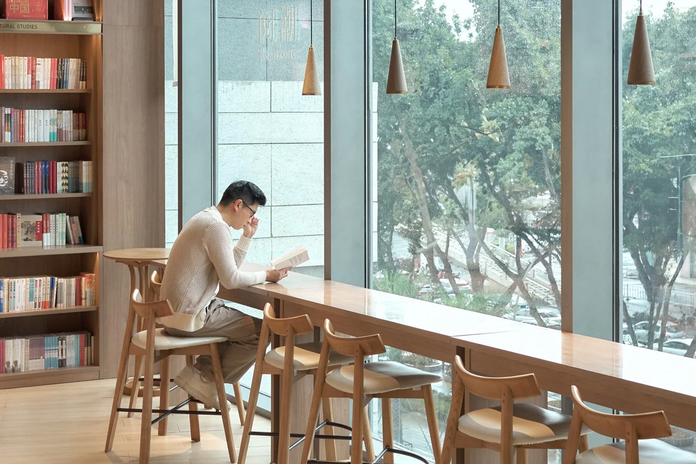 當代書店常以策展型方式呈現,將不同主題融入空間設計中。例如,我前陣子在中國拍攝的閱潮書店,即規劃一區以咖啡為主題的特展,除了展示相關書籍,還銷售咖啡器具,使顧客在探索咖啡文化的同時,可享受相應的產品。這種策略讓書店保持新鮮感,吸引顧客回訪,並加深對特定主題的探討。