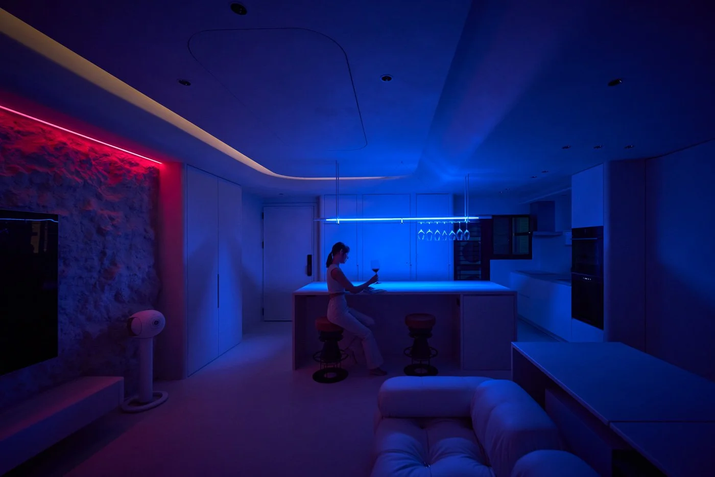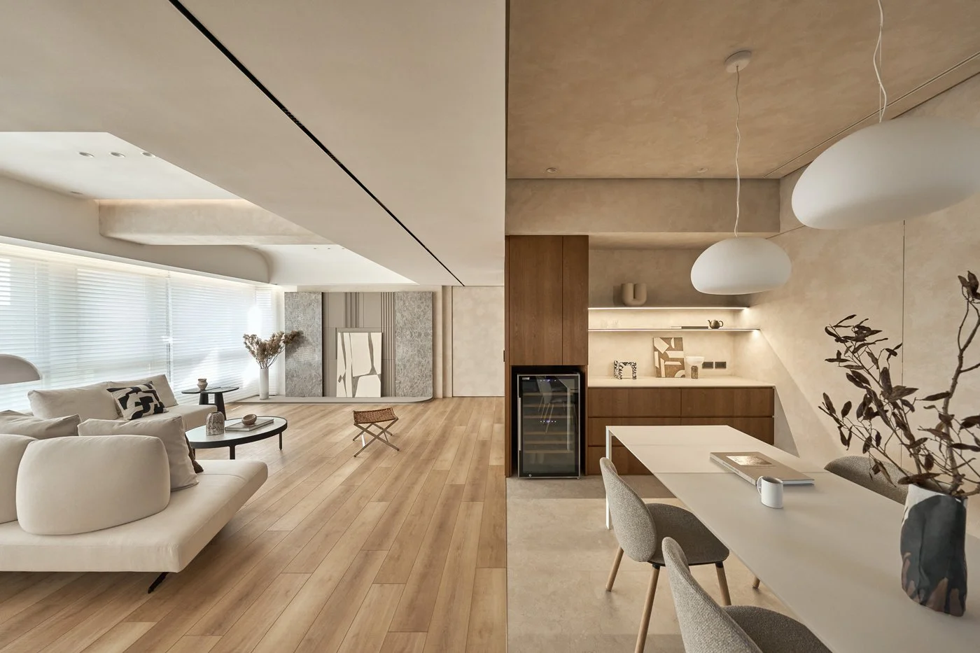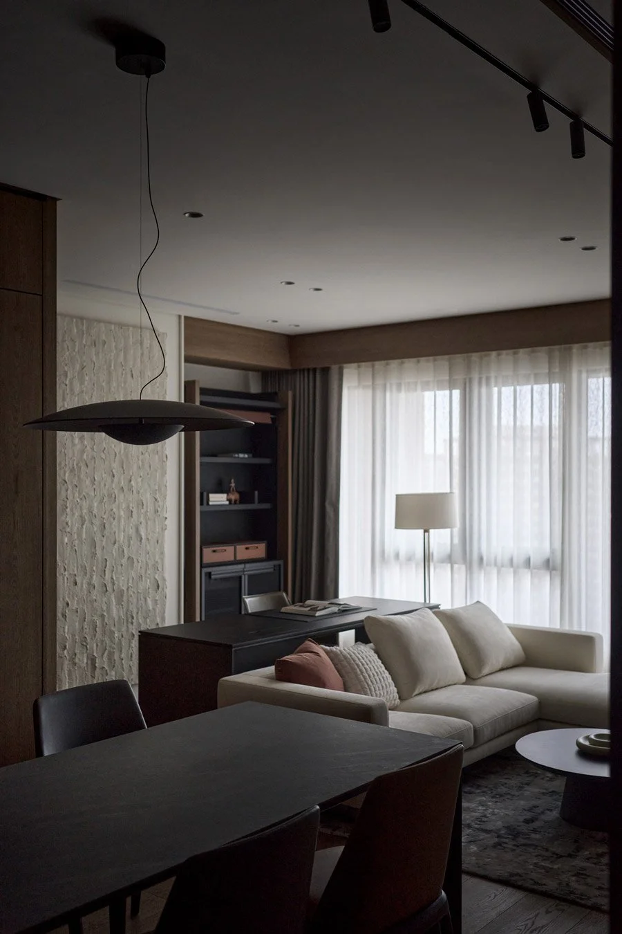 攝影也是如此。空間設計確實會在同一時期顯現當時的流行趨勢。然而即便是相同的格局、同樣的平面配置,甚至相同材料,只要設計師不同,住戶需求背景不同,它就會是不一樣的存在。也許是家具顏色的不同,燈具換了,再加上燈光環控、開關、窗簾的開闔,這些可變動的元素,都會影響空間給人的感受。