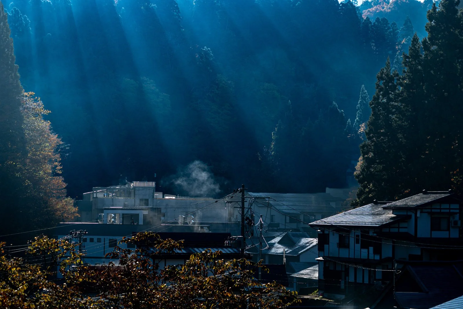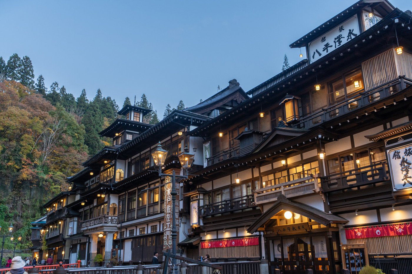 藏在山谷裡的溫泉街區,溪流兩側是大正時期保留至今的木造旅館建築群,四季各有不同風貌,入夜後點燈的街景尤其迷人。