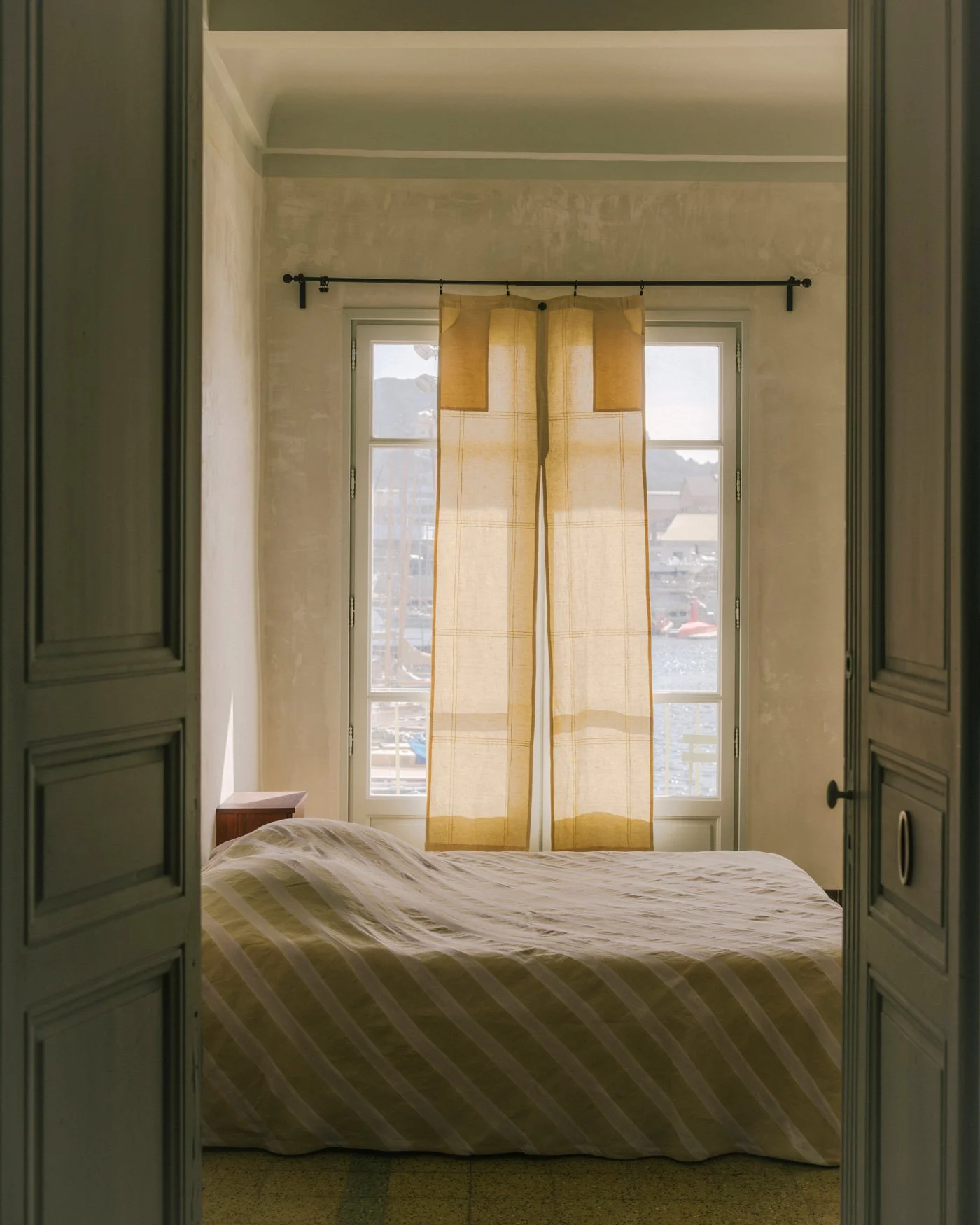 Sarah: 我不喜歡會完全遮蔽光線的厚重窗簾。我偏好輕盈、帶著半透明質地的材料,所以對我來說,就算窗簾沒有遮滿整面窗戶也沒關係。我們花了很多時間測試織品的透明度,透過圖案與層次的堆疊,創造出細微的色調變化,讓它們在白天與黑夜都能展現出不同的表情。