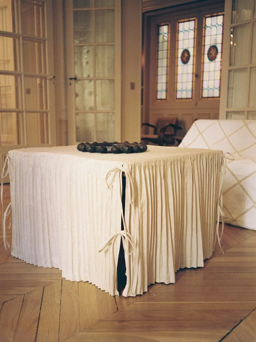 Q: From curtains and tablecloths to bedding, you introduce garment details into the domestic sphere. Do these objects share a common design vocabulary, or does each demand a distinct conceptual logic?