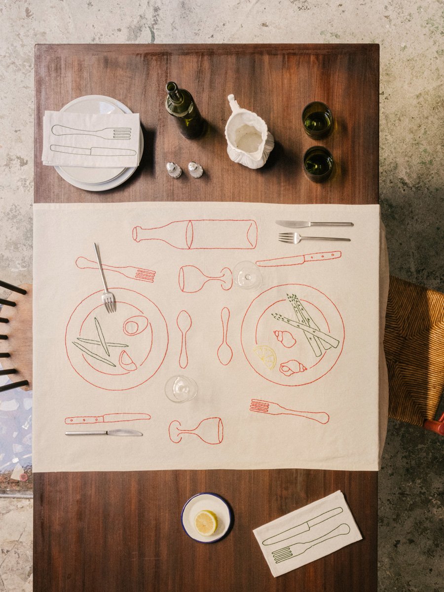 Embroidery is a way of painting in space. I apply it not only to table linens but across other categories of my work. Tablecloths are often perceived as humble objects. Adding embroidery imbues the table with an intimate and human quality to foster conviviality and emotional connection.