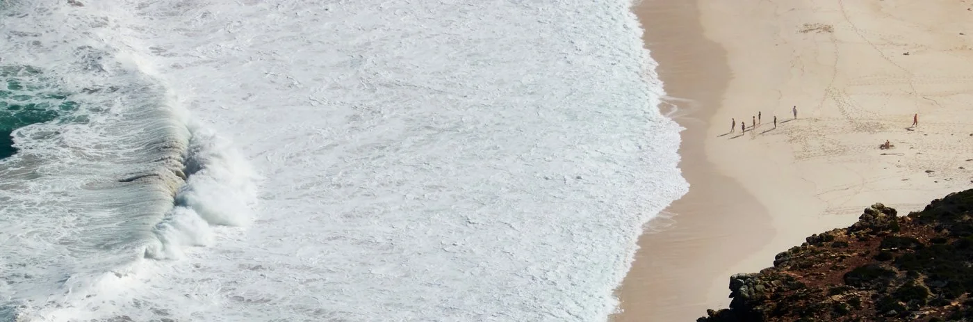 在好望角,Weng 拍下了一張自己非常喜歡的照片:廣大的海灣前,一個人影正往反方向走,而在畫面死角,一個巨大的海浪即將襲來。「拍完後我自己腦補了一個電影情節。那個人可能已經預感到危險先跑了,但畫面外的我們,卻是以『上帝的視角』在看著這個故事的發展。」Weng 笑著說。