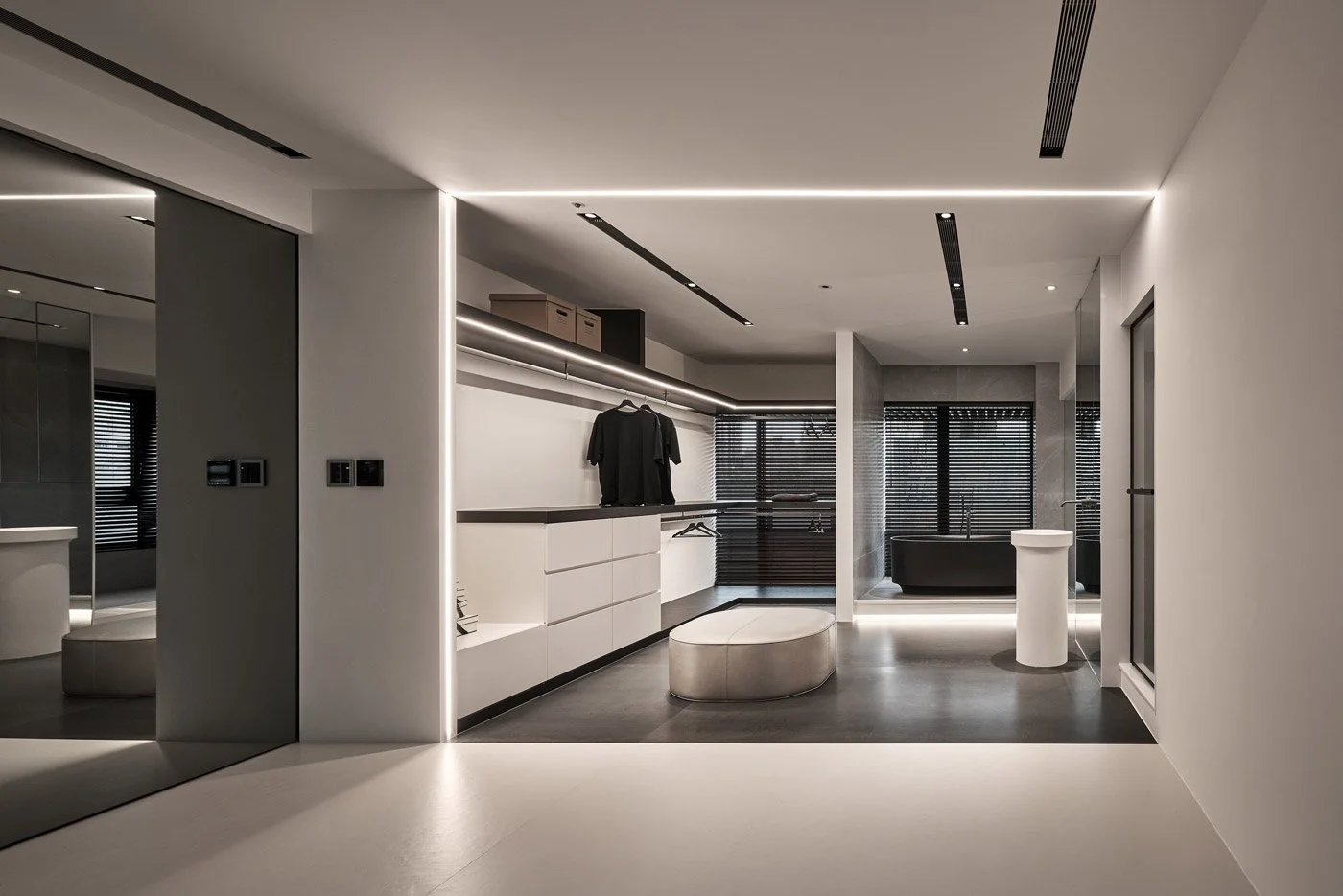 在這裡,空間成為一種無聲的藝術,無邊的寧靜與秩序,引導著屋主慢下腳步,品味那些被日常匆忙所忽略的細微之美,最終勾勒出專屬於個人的安靜生活輪廓,低調而深邃地,映照著居住者豐沛的內在世界。