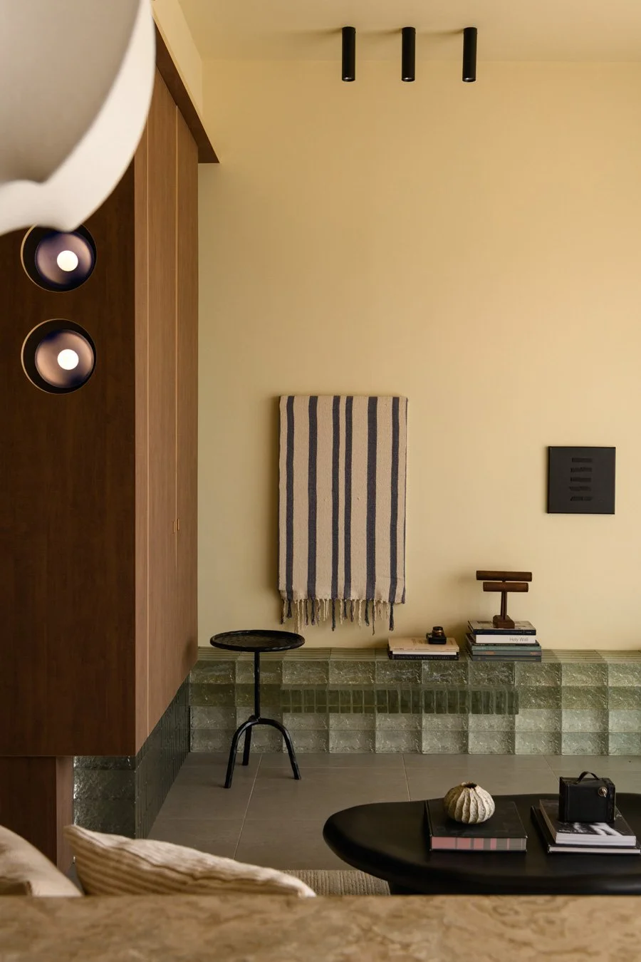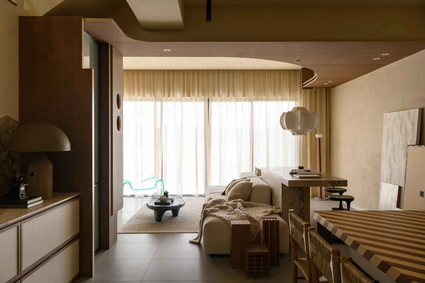 PINS Studio 以大地色調、玻璃磚與溫潤木質,層疊在柔霧般光影裡沉靜的居所:Mellow Symphony