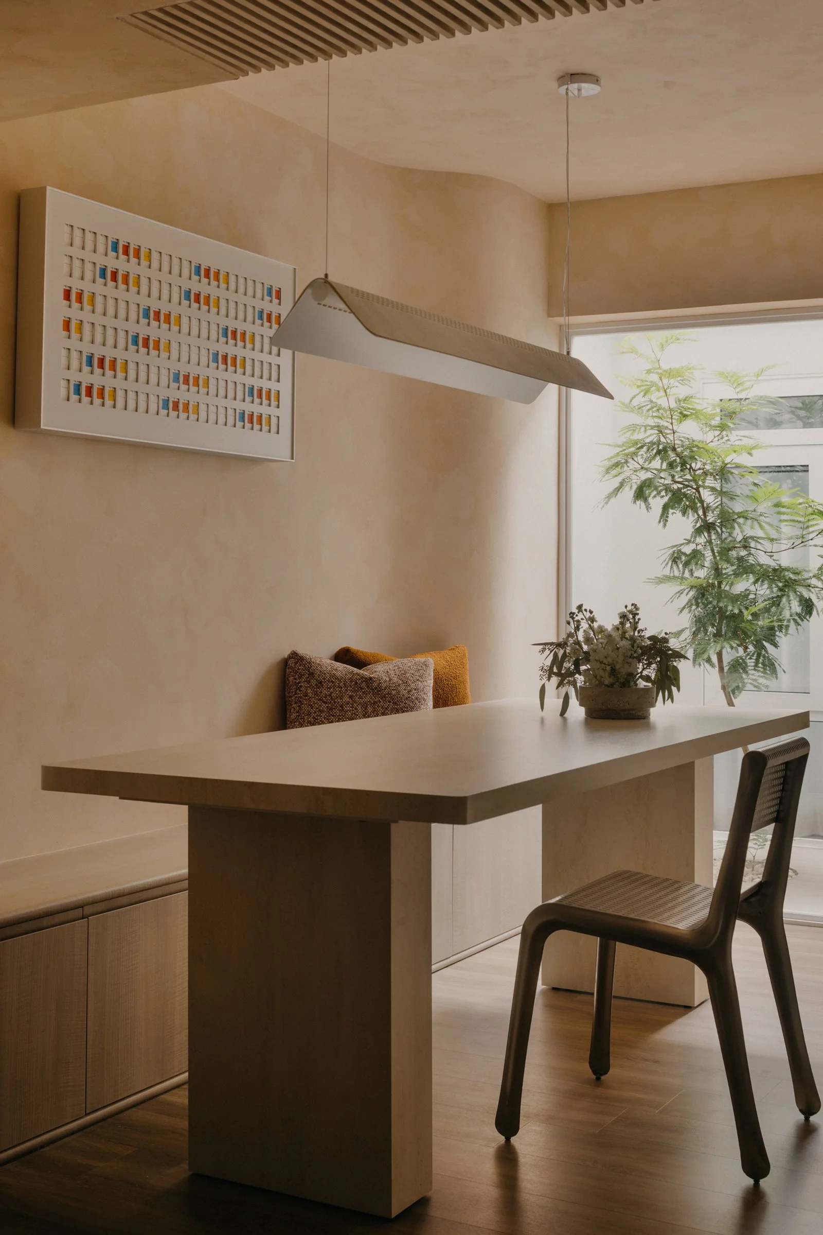 Jalan Gembira sits within the Macpherson precinct, a discreet and liveable enclave where old and new coexist in quiet contentment. There's an immediate sense of familiar warmth when you step into the area. WONDER+ STUDIO founder Ean Chu wanted to bring this quality indoors, letting the home's character sync naturally with the neighbourhood's rhythm. "The context here inspired us to capture that understated, local sensibility while revealing something quiet and refined through the spatial details," he says.